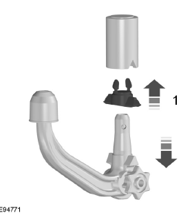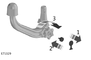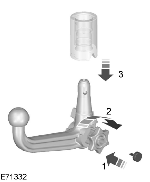Extraire la molette, la tourner dans le sens des aiguilles d'une montre contre la butée (2) et déposer la boule de remorquage (3).