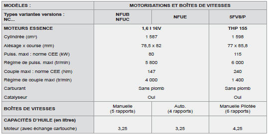 - les pressions de gonfl age à vide et en charge, - les dimensions des jantes et des pneumatiques, - les marques de pneumatiques recommandées par le constructeur, - la pression de gonfl age de la roue de secours, - la référence de la couleur de la peinture.