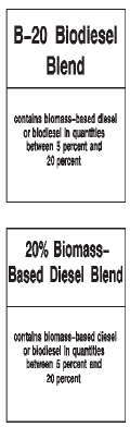 Les pompes distribuant du biodiesel dont la concentration se situe entre 5 % et 20 % doivent porter une étiquette indiquant la concentration de biodiesel. Lorsqu'on remplit le véhicule avec du biodiesel B5, il faut s'assurer que les deux étiquettes ci-dessous sont apposées sur la pompe :