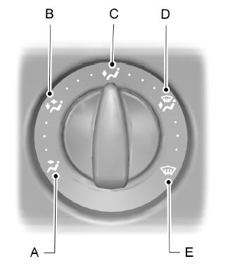 Il est possible d'activer et de désactiver la climatisation et la recirculation d'air lorsque la commande de répartition d'air est réglée sur pare-brise Au besoin, activer le pare-brise chauffant et la lunette arrière chauffante.