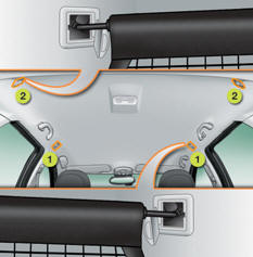 - derrière les sièges arrière (rang 2), - derrière les sièges avant (rang 1) quand les sièges arrière sont rabattus.