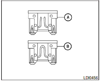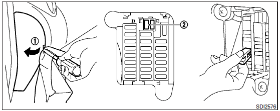 Si un composant électrique ne fonctionne pas et que les fusibles sont en bon état, vérifiez les fils-fusibles 1 dans les porte-fusibles. Si un des fils-fusibles a fondu, remplacez-le par un filfusible d'origine NISSAN.