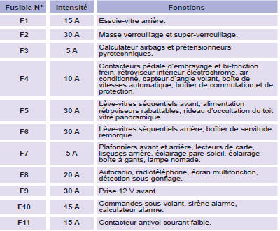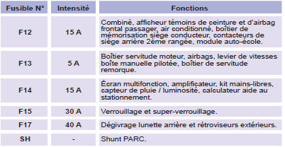 Peugeot 308: Fusibles dans la planche de bordLa boîte à fusibles est placée dans la partie inférieure de la planche de bord (côté gauche).