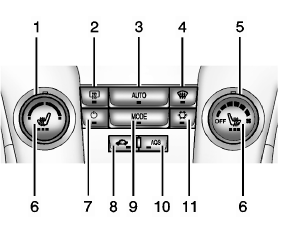 Sièges chauffants (si montés): Appuyer pour activer/désactiver les sièges chauffants. Se reporter à Sièges chauffants avant à la page 3-5.