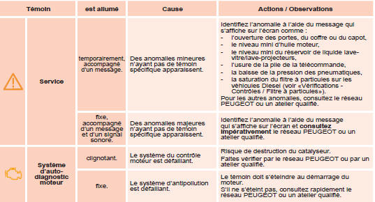 En cas de problème, n’hésitez pas à consulter le réseau PEUGEOT ou un atelier qualifié.
