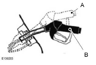 Note : Le dispositif de blocage à ressort s'ouvre lorsque vous introduisez un pistolet de remplissage d'un diamètre adéquat. Ce dispositif évite les erreurs de ravitaillement.